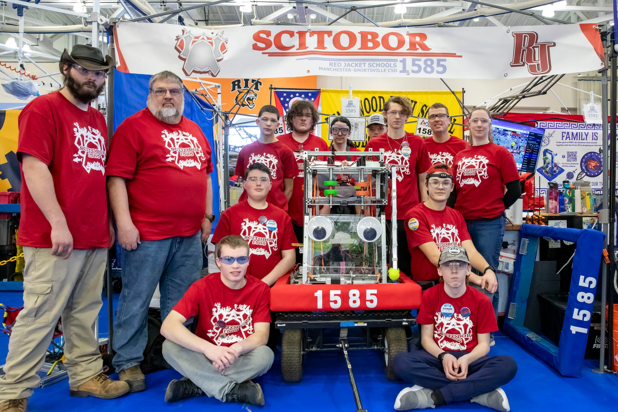 Welcome to the Red Jacket Robotics homepage! We are a high school robotics team based in Manchester, NY. Our team is dedicated to inspiring students to pursue careers in science, technology, engineering, and mathematics (STEM) through hands-on learning and competition. We participate in the FIRST Robotics Competition (FRC), where we design, build, and program robots to compete against other teams from around the world. Our team is made up of students from diverse backgrounds and skill levels, all working together to achieve our goals. On this website, you can find information about our team, our projects, and our upcoming events. We also share updates on our progress throughout the season, as well as resources for students interested in robotics and STEM education. Thank you for visiting our website, and we hope to see you at one of our events soon!